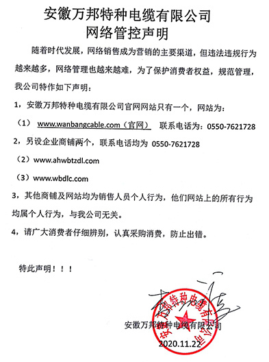 鄭重聲明:安徽萬邦特種電纜有限公司官方網站為:www_wanbangcable_com.ajlovefest.com,除此之外無任何子網站或合作網站,其余均為假冒偽劣。電話:0550-7621728 13485756353 地 址:安徽省天長市滁州高新技術產業開發區經四路29號